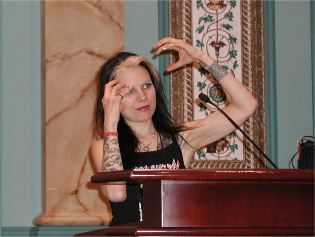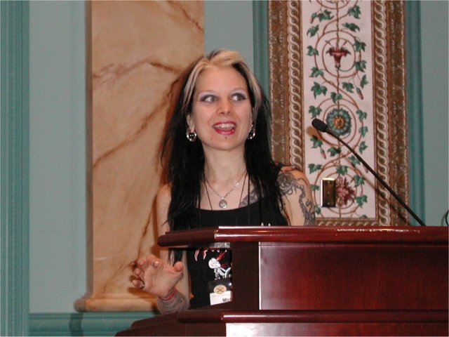 Michelle's such an expressive person that I just kept clicking while she was talking. First picture: Heeeeeeeeeeeeeeere's Michelle! (Susan makes the introduction.) Last picture: Michelle with her mother. [ Back ] |