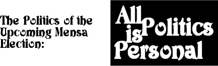 To me, politics American or Mensan is very personal. In