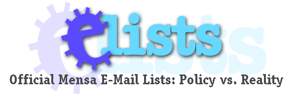 There are mechanisms in place to ensure that e-lists don't grow each year as officers change. Between the National Office's contacting some list members annually and other procedures, Mensa does cull the lists of obsolete e-mail addresses and those list members no longer interested. But, by the Chairman's fiat, some of our lists have lost those who might be interested, might have something to contribute, but aren't going to act positively to be reinstated. How distressing is that Mensa is always crying out for volunteers; but those who did volunteer and did serve, but aren't presently in office are just dumped?