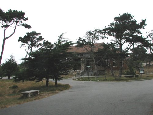 ![]() Now, a little scenery for people who have never been to Asilomar. Sunday afternoon, before the Casino, I took a walk around the meadow, then on down to the beach. This is the Crocker Dining Hall, the inside of which you saw on the previous page. A bell in the little cupola atop the building rings to signal meal times. |