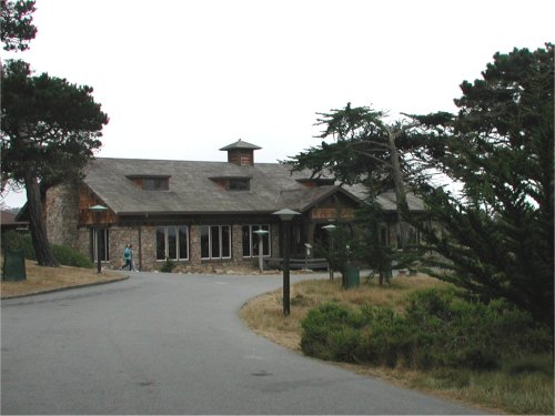 ![]() The meadow, incidentally, is a circular bit of open area, which you see kind of smooshed between these two pictures. The building above, directly across the meadow from the dining hall, is Chapel. Inside, Chapel looks like a small auditorium, and it was in Chapel that Edward Teller addressed Asilomar attendees some years back. |