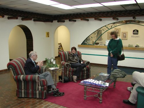 Dan Wilterding and Susan Ramsdell do a little catching up before dinner.